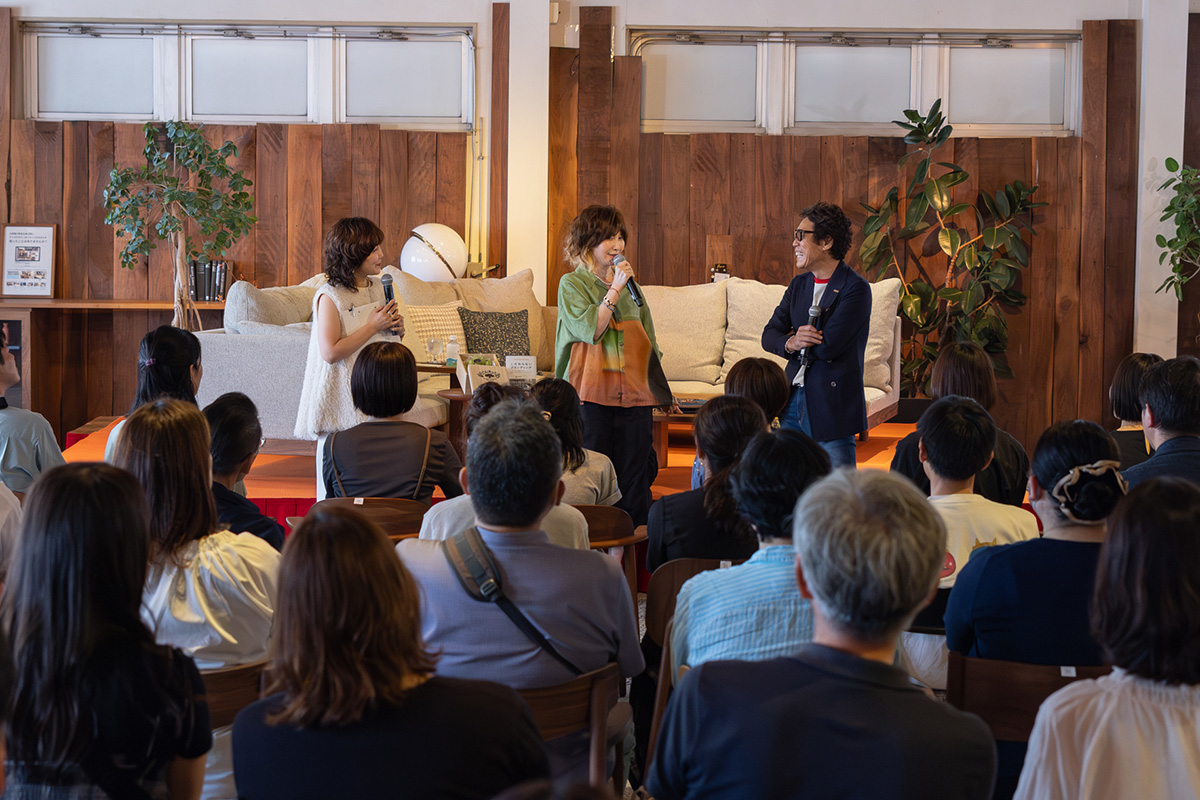 会場には多くのお客様が集まり、1時間にわたり、YOUさんならではの視点で「ライフスタイル」「美容」「居心地の良い場所」「好きなもの」そして「年々変わっていくもの・変わらないもの」といったテーマについて語っていただきました。