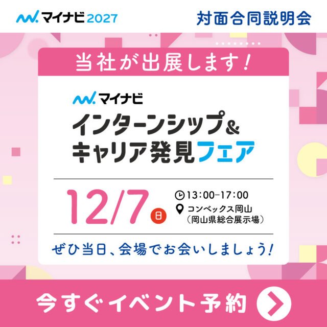 インターンシップ&キャリア発見フェア 岡山会場に出展いたします