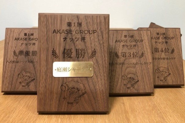 AKASE GROUP株式会社はスポンサーとして、優勝から4位までのチームにオリジナル盾を贈呈。